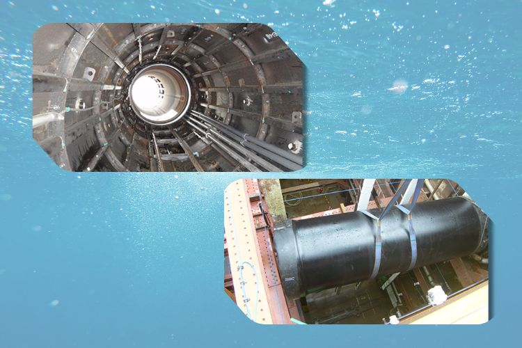 さらに進化した「DXRⅡ工法」は、呼び径400~600mmの小口径管に対応。従来のシールド工法より5口径分小さい鞘管(呼び径1000㎜)で施工でき、 R=10mの急曲線や1000m以上の長距離施工も可能です。遠隔操作による継手接合や水圧試験も導入され、より安全・確実な施工が可能となりました。